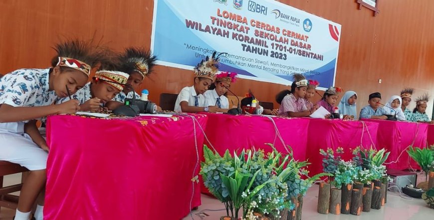 SENTANI – Koramil 1701-01/Sentani bekerja sama dengan Dinas Pendidikan dan Pengajaran Kabupaten Jayapura, Bank Papua dan Bank BRI menggelar LCC (Lomba Cerdas Cermat) Tahun 2023. Peserta lomba merupakan para siswa/i tingkat SD yang berada di bawah binaan Koramil 1701-01/Sentani berjumlah sebanyak 10 sekolah. Lomba cerdas cermat ini digelar di Aula/Gor Yonif RK 751/VJS, Kelurahan Hinekombe, Distrik Sentani, Kabupaten Jayapura. Kamis (23/02/2023).